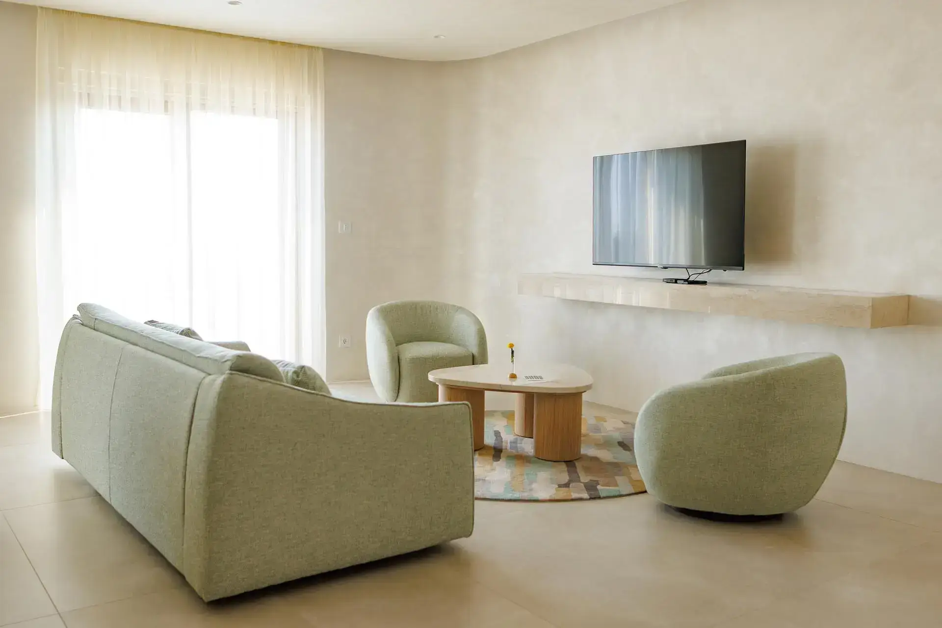It includes free internet access, an electronic safe, air conditioning, a flat-screen TV with cable channels, a bathroom including shower and two balconies. A state-of-the-art smart system for digital temperature control, lighting and curtains provides additional comfort.