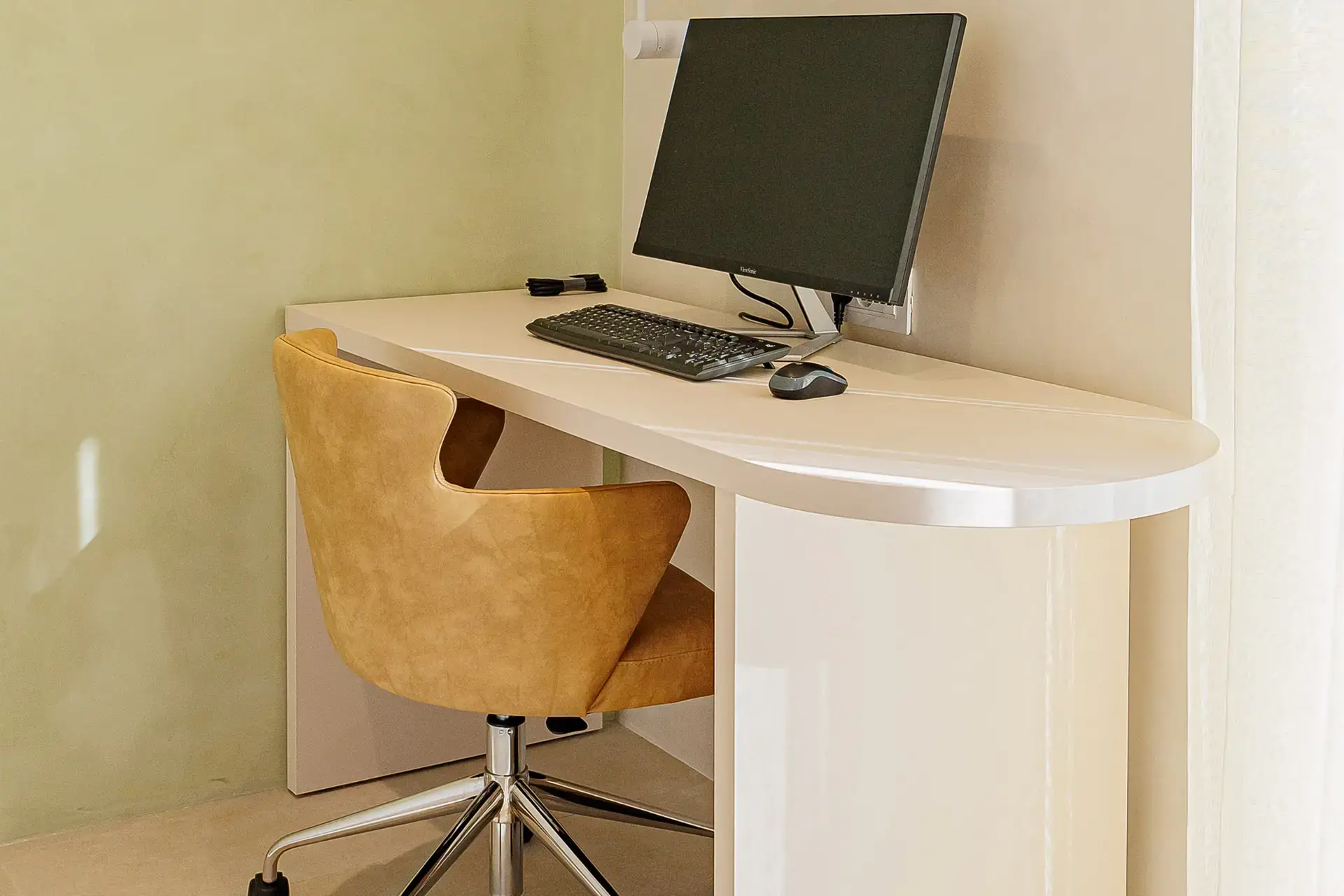 It is equipped with all the necessary facilities for a comfortable stay, including a fully equipped kitchen, a bedroom with a luxurious double bed and a living room with a sofa bed, a dining area, a separate area with a desk and an armchair, as well as a separate wardrobe.